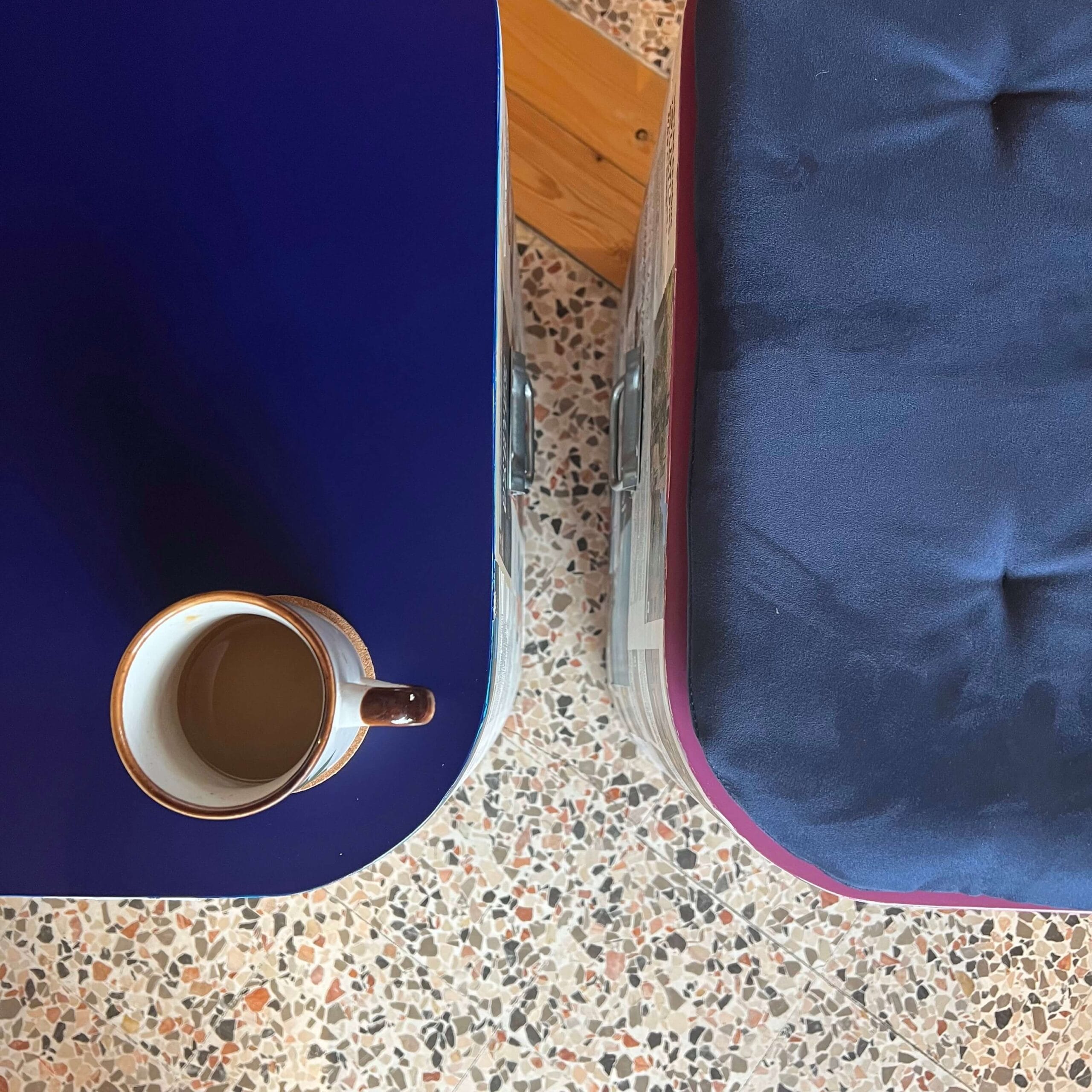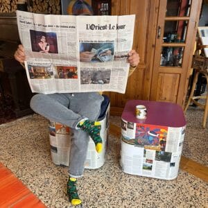 The Reading Wood Box with painted top and upcycled newspaper sides is a modern wooden accessory crafted from MDF wood, featuring unique sides covered in upcycled newspaper. The top is available in two stylish colors: dark blue and magenta. With two handles for easy portability, this compact and minimalist box is perfect for placing in a corridor, library, or by the bedside. Eco-friendly and contemporary, the Reading Box is a practical and unique addition to any space.