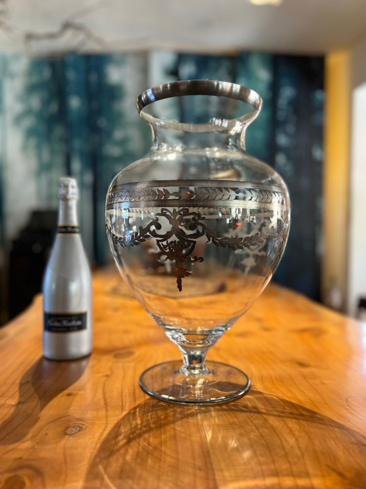 VEVA Italian Baroque Crystal Vase with Silver Ornaments