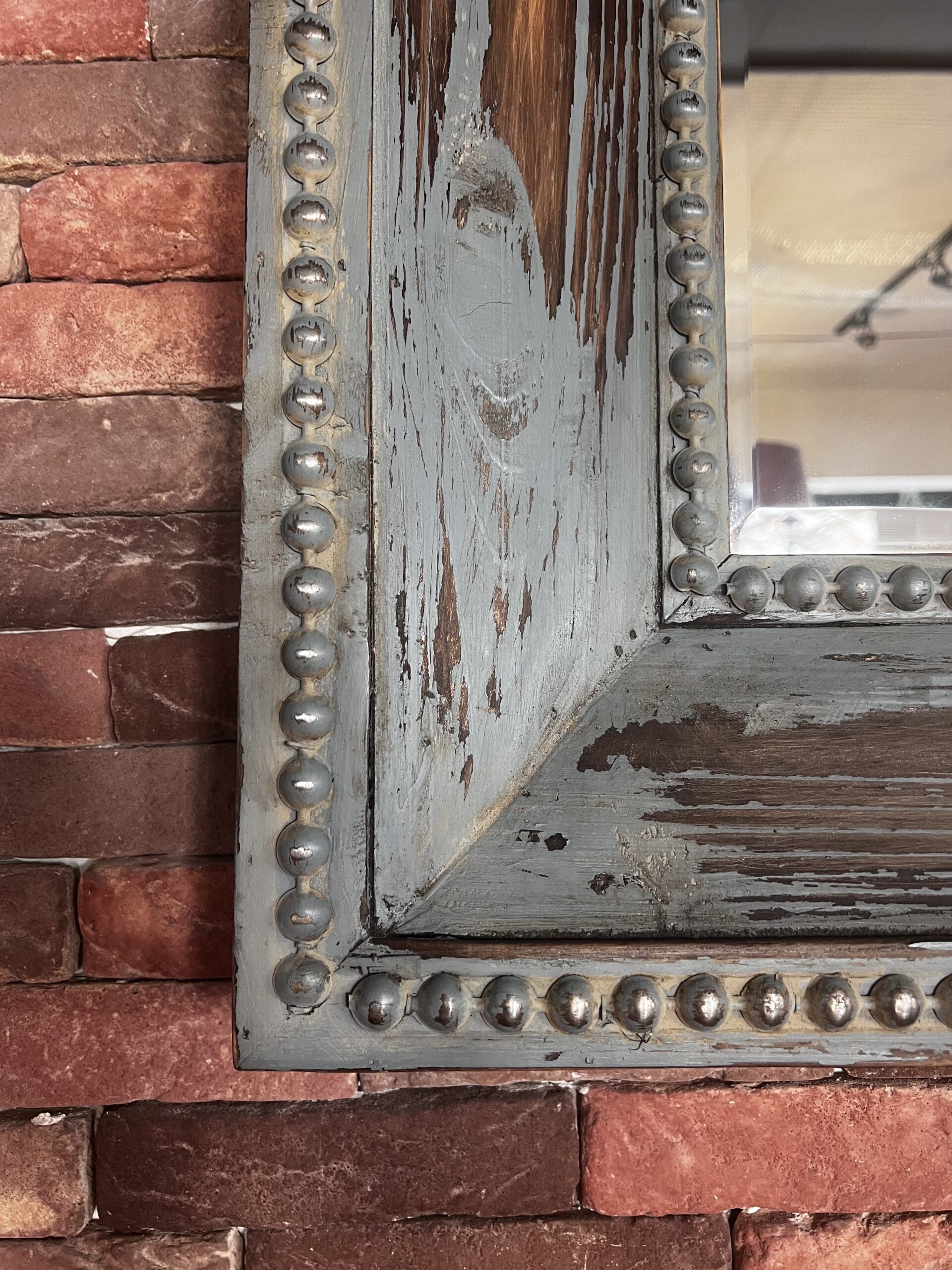 Vintage Blue Wooden Mirror Frame – Original Patina Finish