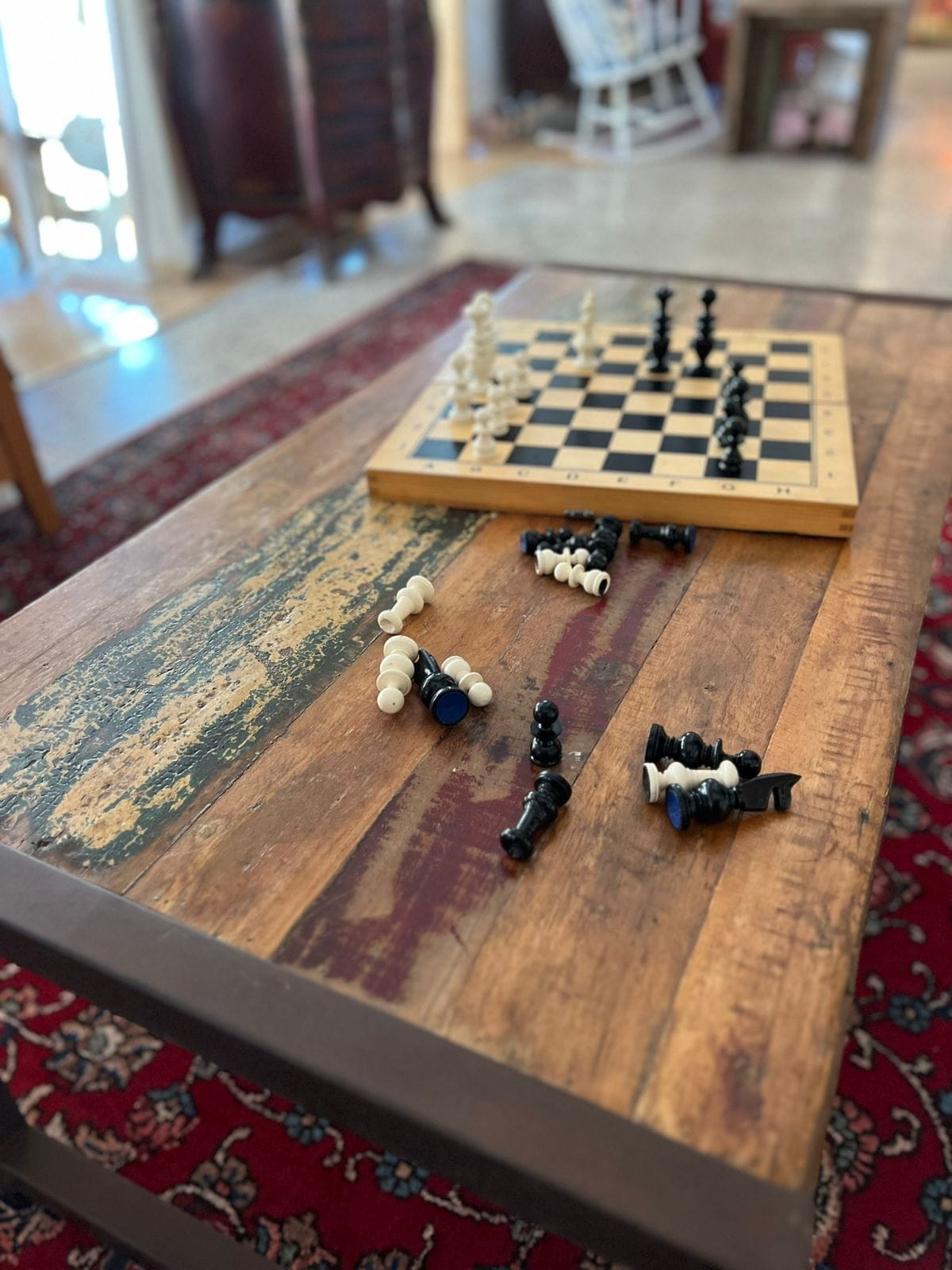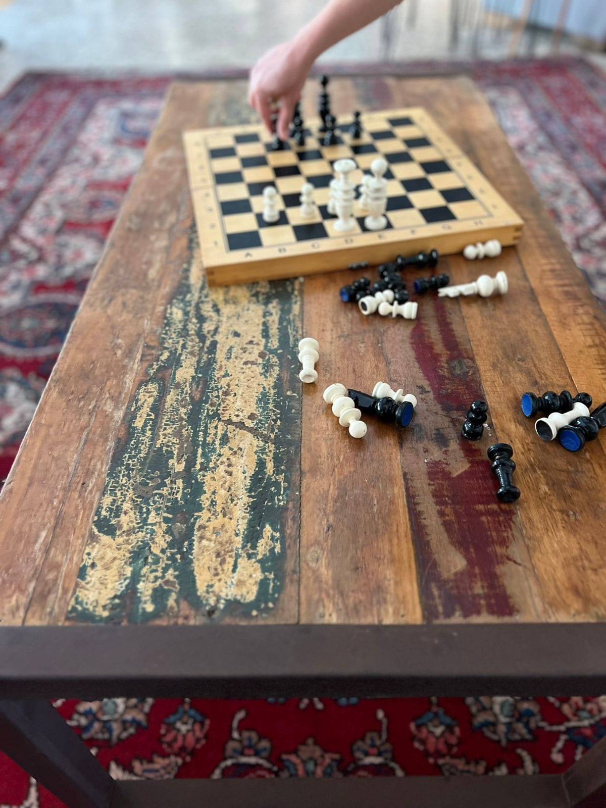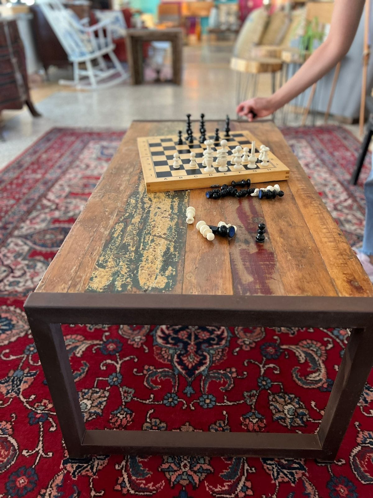 Vintage-Style Wooden Coffee Table with Steel Legs — RockFort Boutique LebanonVintage-Style Wooden Coffee Table with Steel Legs