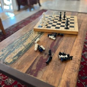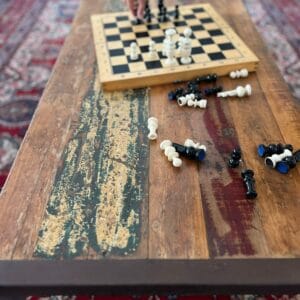 Be the first to review “Vintage-Style Wooden Coffee Table with Steel Legs”