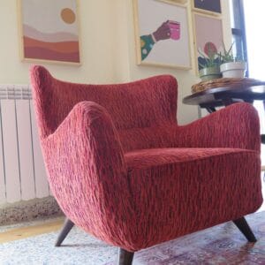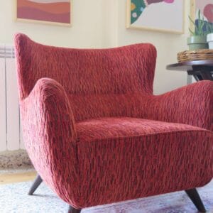 An original Art Deco piece from around 100 years ago, this elegant French one-seater features graceful curves around the headrest and a comfortable, inviting shape. Immerse yourself in vintage luxury with this timeless piece.