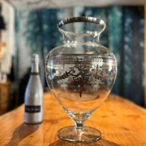 Crafted with elegance, this VEVA Italian crystal vase showcases luxurious Baroque-style silver detailing, making it a timeless centerpiece for any refined space.